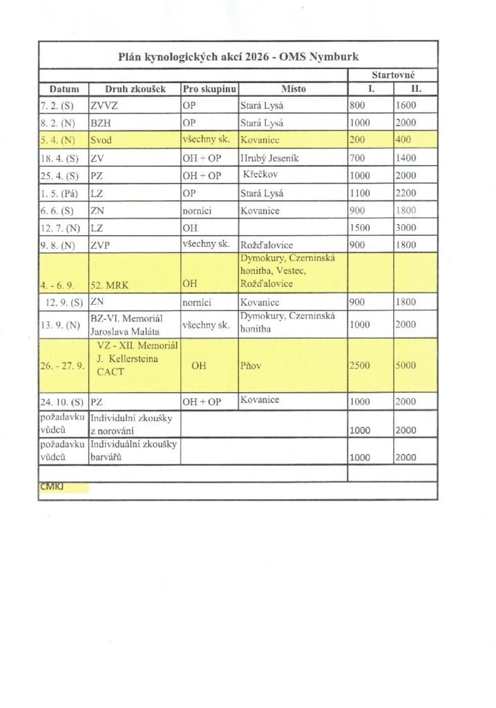 Upozornění! Na přihlášku bez zaplacení startovného se nebude brát zřetel. Platbu provedete ihned po potvrzení přijetí přihlášky na číslo účtu 2902892561/2010, nebo hotově k kanceláři OMS Nymburk. Při zrušení účasti na zkoušce se poplatek vrací po odečtení manipulačního poplatku 300 Kč před uzávěrkou, po uzávěrce 50 % startovného. Pokud fena začne hárat, vůdci bude zaslán poplatek zpět po odečtení manipulačního poplatku (výše) na základě doložení potvrzení veterinárního lékaře.
